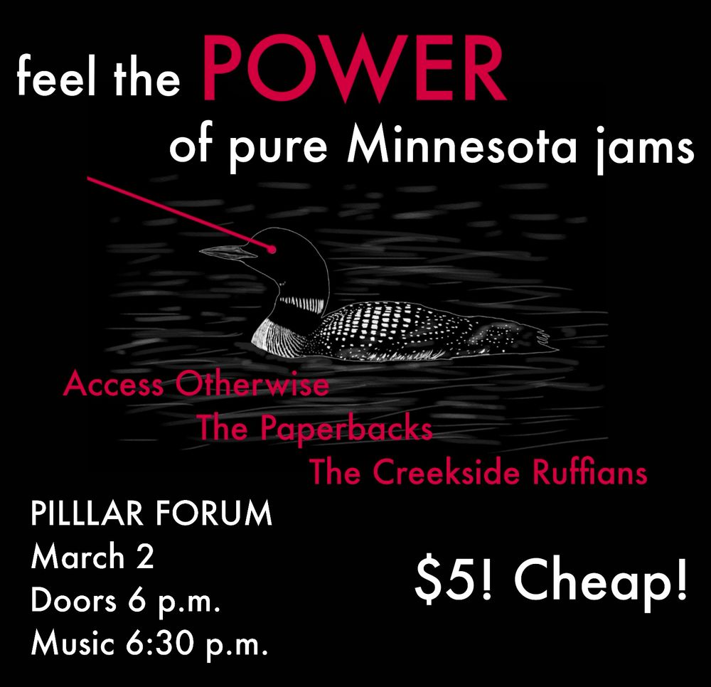 March 2, with Access Otherwise and the Paperbacks Doors 6, music 6:30 $5